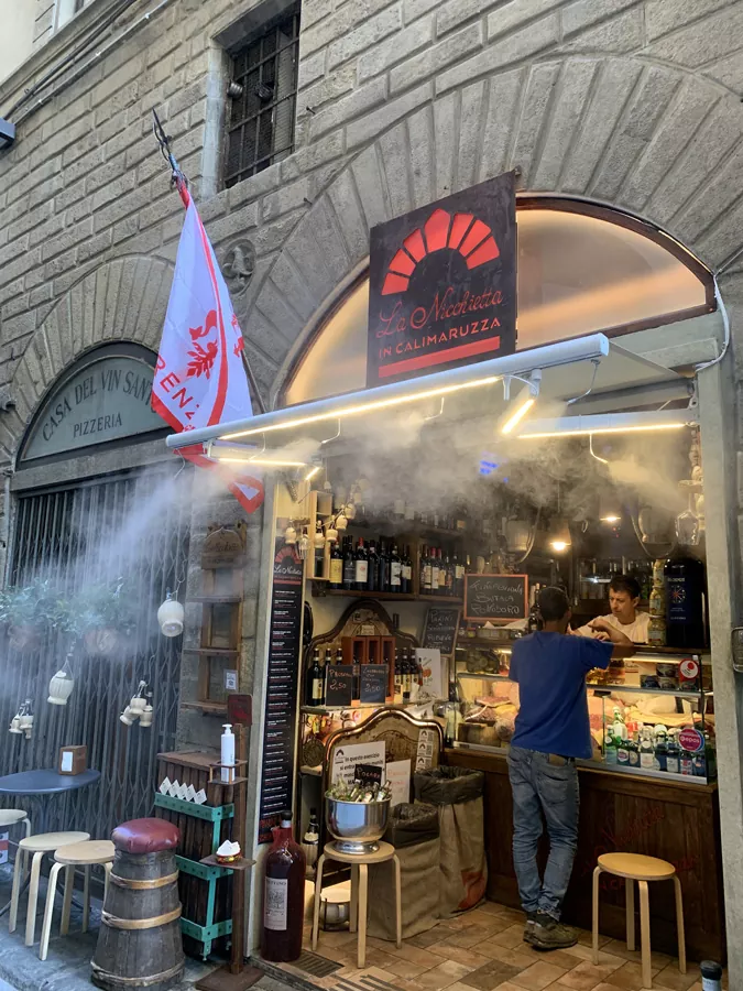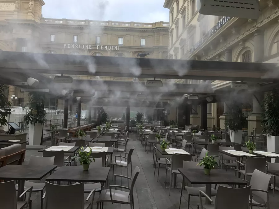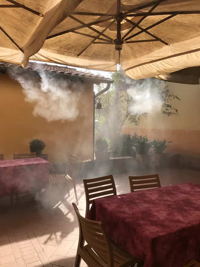 - Răcire terase, baruri și restaurante: Maximizați profitul pe timpul verii! Oferiți clienților o atmosferă proaspătă pe terasă cu ajutorul duzelor brevetate care vaporizează miliarde de micro-picături.
