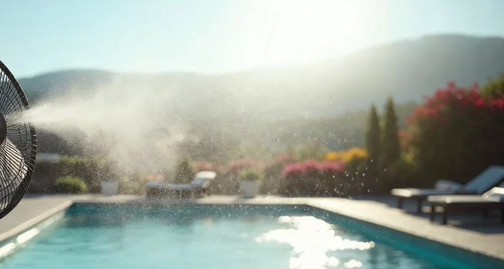 Răcire prin nebulizare pentru piscine, grădini și parcuri acvatice