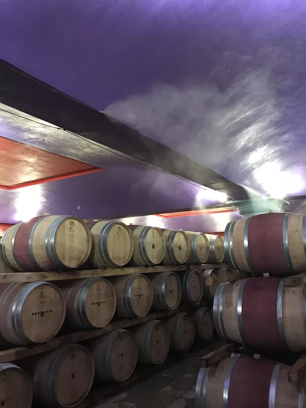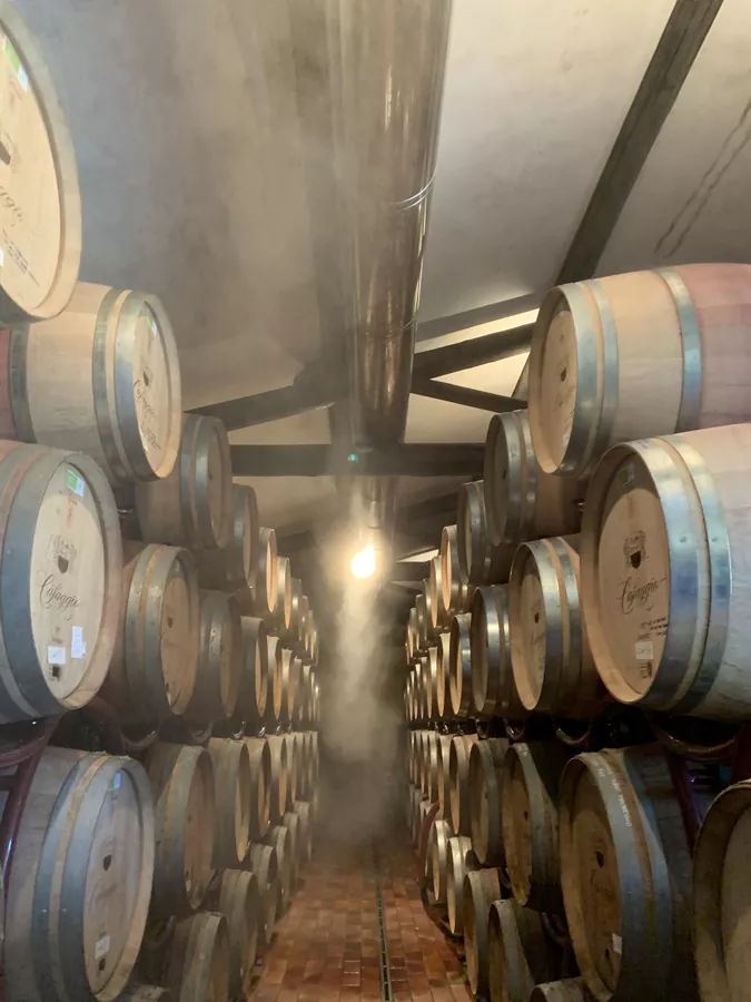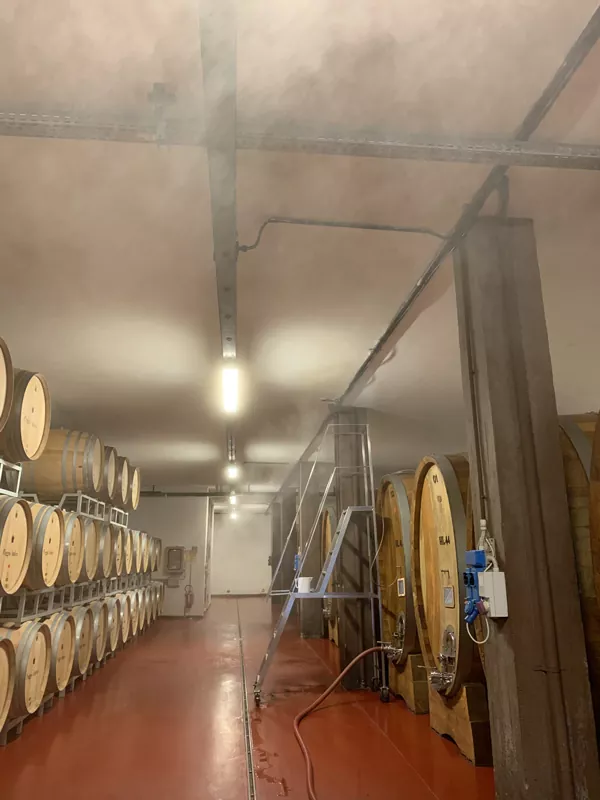 Umidificarea prin atomizare este esențială în crame pentru a stabiliza procesul de maturare. Un nivel de umiditate controlat elimină riscul de uscare a doavelor de lemn și previne evaporarea excesivă a vinului (pierderile de tip „Angel’s Share”).